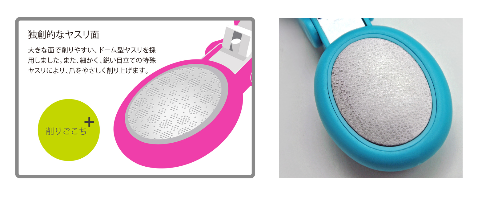 大きな面で削りやすいドーム状のやすりは細かく鋭い目立てで爪をやさしく削り上げます。